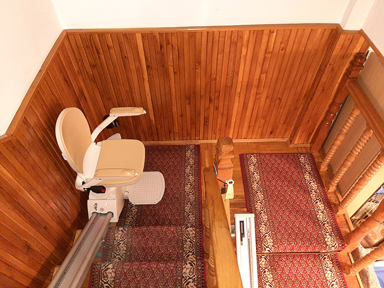 Az alábbi képeken látható, hogy a széklift hogyan helyezkedik el a lépcsőn, mekkora belógása van, mind az alsó, mind a felső végálláson.