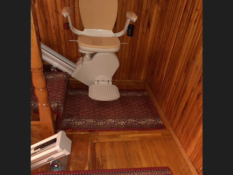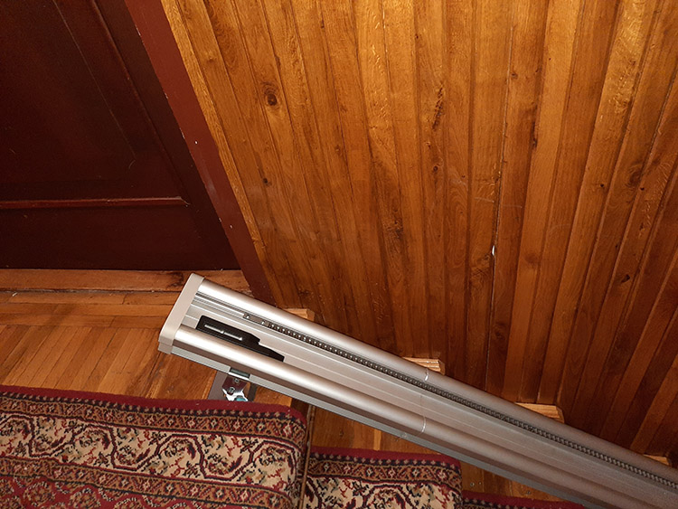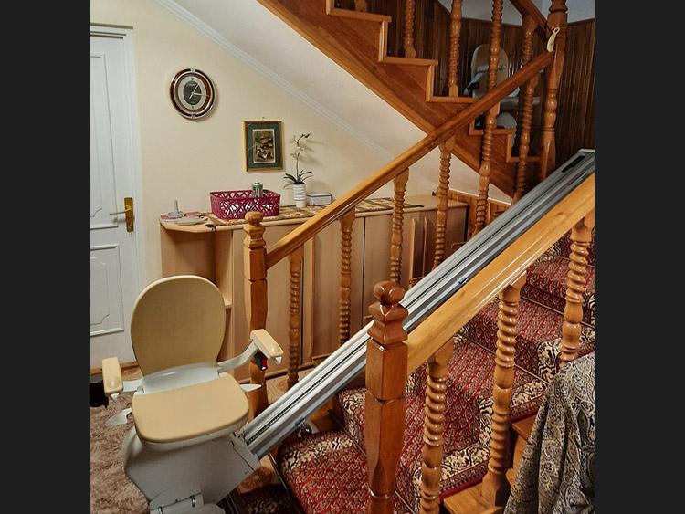 Az alábbi képeken látható, hogy a széklift hogyan helyezkedik el a lépcsőn, mekkora belógása van, mind az alsó, mind a felső végálláson.